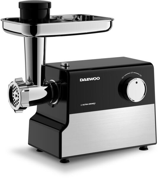 Daewoo DMG2000DC húsdaráló, 2000 W, 2, 5 kg/perc, 3 vágótárcsa, paradicsomlé + kolbász tartozékok, rozsdamentes acél penge, bolygó funkció, l. védelmi osztály, Fekete/ezüst